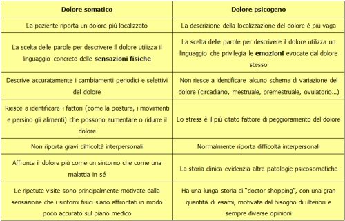 Dolore psicogeno: criteri diagnostici