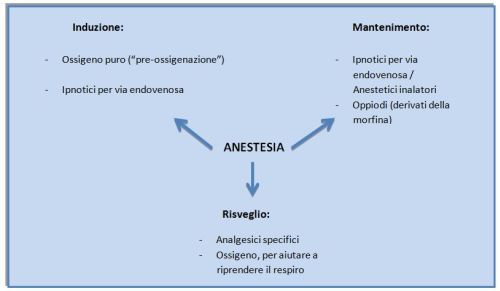 L’anestesia generale è una condizione farmacologicamente indotta e reversibile di perdita dello stato di coscienza, accompagnato da rilassamento muscolare e analgesia, che perdurano per tutta la durata della procedura chirurgica (Barash et Al 2015). A questo scopo vengono utilizzate più classi di farmaci, che agiscono alterando la trasmissione dello stimolo nervoso dalla periferia verso il sistema nervoso centrale. L’anestesia generale viene praticata in regime di totale sicurezza.