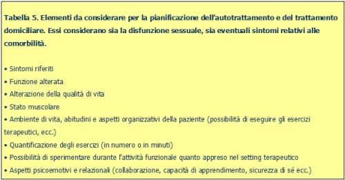 Per la programmazione dell’autotrattamento e del trattamento domiciliare, viene considerata la condizione della paziente negli aspetti soggettivi (sintomi) e oggettivi (segni, collaborazione al trattamento) rapportati al momento terapeutico, al fine di mantenere nell’esecuzione del compito un adeguato livello di difficoltà e soddisfare così gli obiettivi terapeutici precedentemente pianificati (Bortolami 2009b) (Tab. 5).