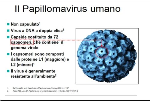I Papillomavirus sono infatti virus piccoli e semplici, formati da DNA a doppia elica, contenente i diversi geni necessari alla loro replicazione, in circa 8.000 kbasi, e rivestiti da un semplice rivestimento proteico, formato dal ripetersi di due proteine solamente: la L1, più numerosa e più “esterna”, e la L2, meno numerosa e più “interna” (Longworth et Al, 2004; Muñoz et Al, 2006). Tale rivestimento è organizzato in un capside a geometria icosaedrica formato da 72 capsomeri. ognuno a sua volta composto da una “rosetta” di cinque proteine L1, il tutto per una dimensione di circa 55 nanometri. Il gene L1 determina variazioni nella proteina del capside virale, cioè il contenitore del DNA virale, e quindi determina la “diversità esteriore”, la diversa “carrozzeria” dei vari Papillomavirus umani, riconoscibili in base a specificità della proteina L1, che equivale al “numero di targa”. La definizione tassonomica degli HPV in tipi, sottotipi e varianti si basa infatti sulla sequenza del gene che regola la costruzione della proteina L1, che differisce rispettivamente nel 10%, 2-10% e 2% della sequenza stessa.