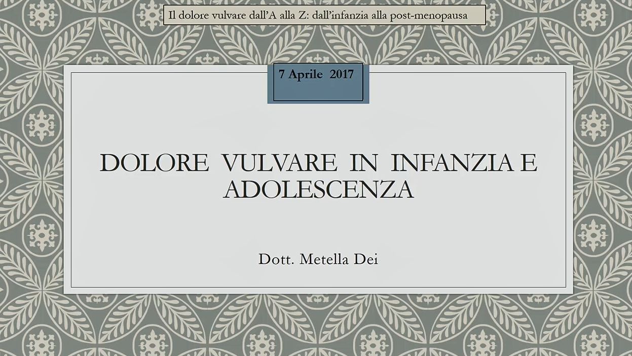 Obiettivo del lavoro è focalizzare la nostra attenzione sulle situazioni cliniche, sia frequenti che rare, sottese a situazioni di dolore/bruciore vulvare ricorrente o cronico, affrontando il tema prima nelle bambine e successivamente nelle adolescenti. L’identificazione e una terapia adeguata di queste situazioni sono importanti, perché sappiamo che stimoli dolorosi ricorrenti di varia origine possono nel tempo sfociare in quadri di vulvodinia in cui vari fili patogenetici si intrecciano.
